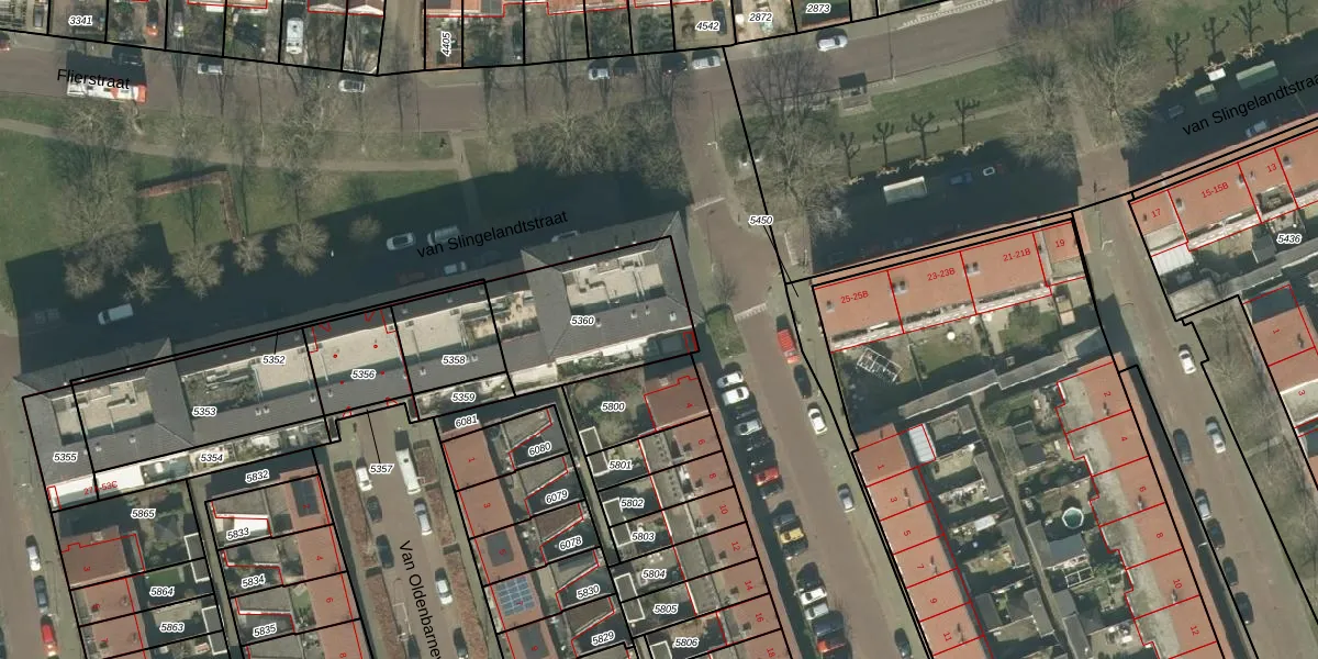Het perceel waarop van Slingelandtstraat 27-C staat heeft een oppervlakte van 523 m². Dit is een groot perceel. De perceeloppervlakte wordt geregistreerd door het Kadaster. Gedetailleerde informatie over de maten van dit perceel kunt u vinden in het rapport Kadastrale kaart met maatvoering van van Slingelandtstraat 27-C.