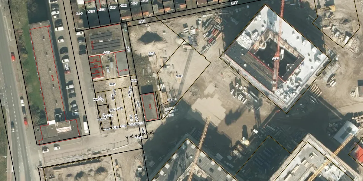 Vedergraspad 14 is gelegen op kadastraal perceel BDA00E9205. Deze kadastrale aanduiding is uniek en wordt gebruikt door het Kadaster om eigendomsrechten en andere zakelijke rechten vast te leggen. Het perceel maakt onderdeel uit van de kadastrale gemeente Breda.