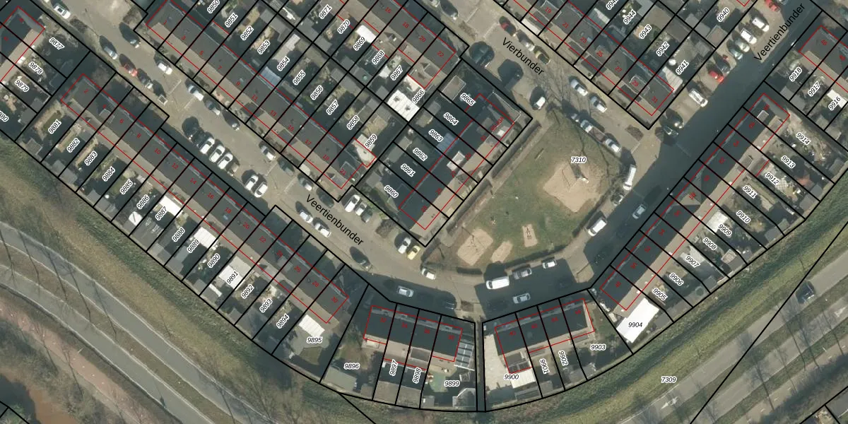 Het perceel waarop Veertienbunder 23 staat heeft een oppervlakte van 190 m². Dit is een middelgroot perceel. De perceeloppervlakte wordt geregistreerd door het Kadaster. Gedetailleerde informatie over de maten van dit perceel kunt u vinden in het rapport Kadastrale kaart met maatvoering van Veertienbunder 23.