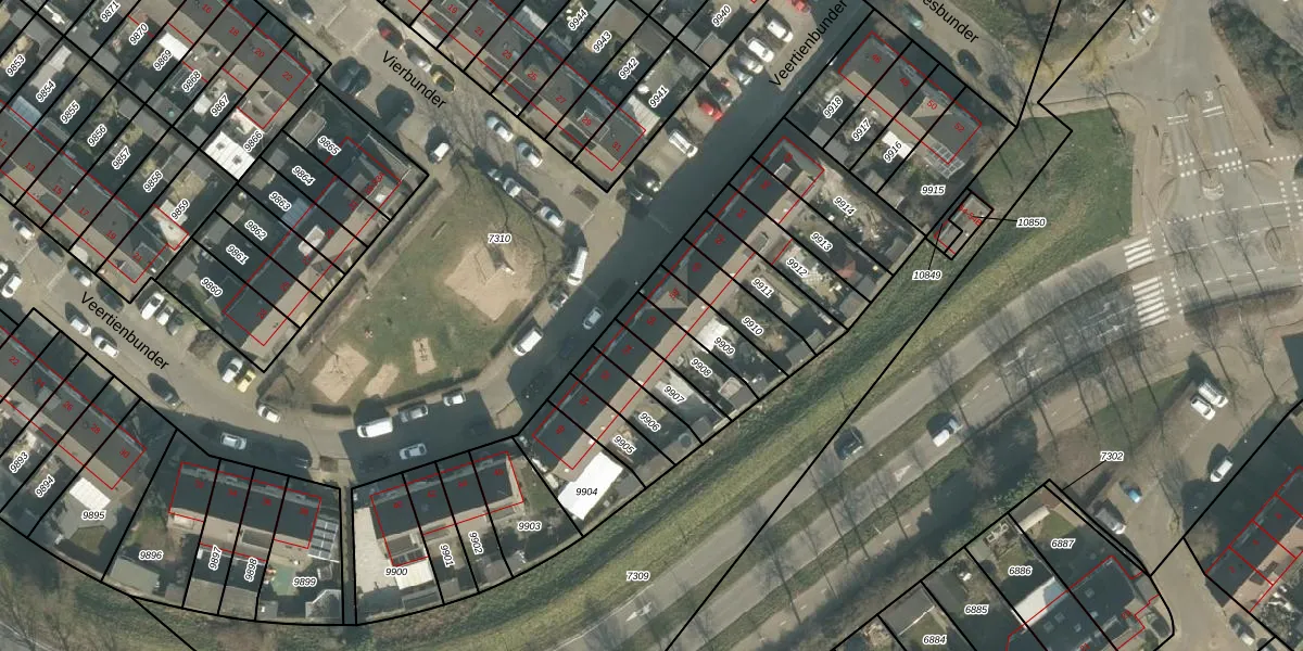 Veertienbunder 56 is gelegen op kadastraal perceel BDA00H9908. Deze kadastrale aanduiding is uniek en wordt gebruikt door het Kadaster om eigendomsrechten en andere zakelijke rechten vast te leggen. Het perceel maakt onderdeel uit van de kadastrale gemeente Breda.
