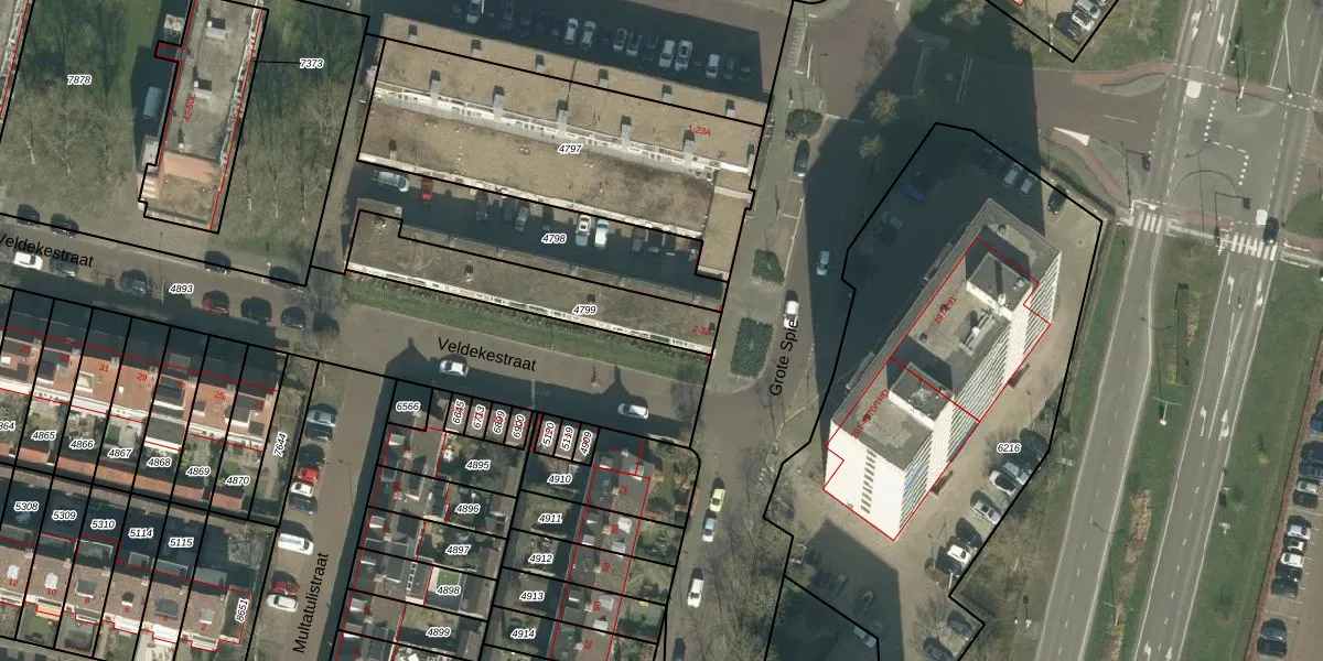 Het perceel waarop Veldekestraat 2-A staat heeft een oppervlakte van 382 m². Dit is een groot perceel. De perceeloppervlakte wordt geregistreerd door het Kadaster. Gedetailleerde informatie over de maten van dit perceel kunt u vinden in het rapport Kadastrale kaart met maatvoering van Veldekestraat 2-A.