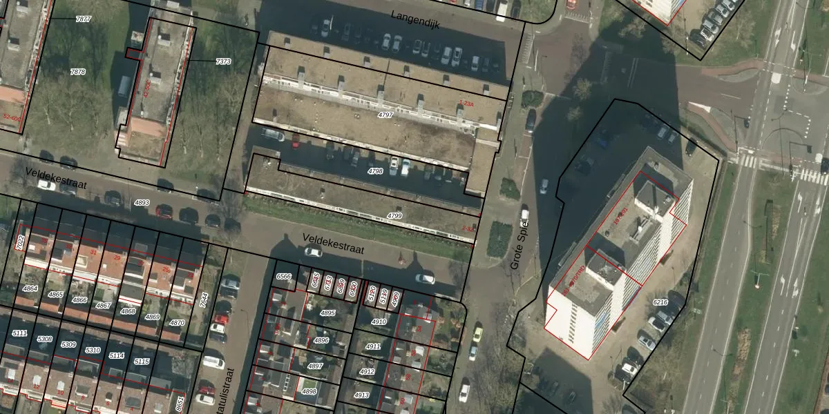 Veldekestraat 30 is gelegen op kadastraal perceel BDA00E4799. Deze kadastrale aanduiding is uniek en wordt gebruikt door het Kadaster om eigendomsrechten en andere zakelijke rechten vast te leggen. Het perceel maakt onderdeel uit van de kadastrale gemeente Breda.