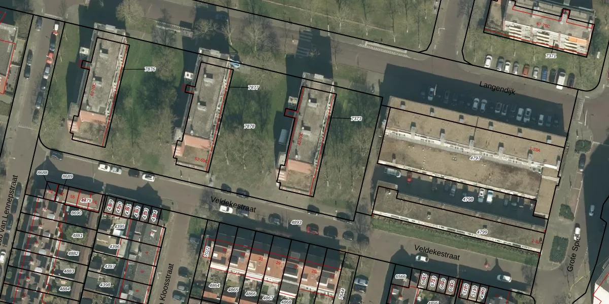 Veldekestraat 46-C is gelegen op kadastraal perceel BDA00E7373. Deze kadastrale aanduiding is uniek en wordt gebruikt door het Kadaster om eigendomsrechten en andere zakelijke rechten vast te leggen. Het perceel maakt onderdeel uit van de kadastrale gemeente Breda.