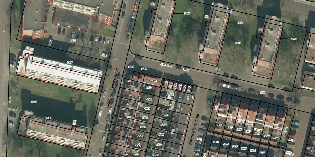 Veldekestraat 51 is gelegen op kadastraal perceel BDA00E4879. Deze kadastrale aanduiding is uniek en wordt gebruikt door het Kadaster om eigendomsrechten en andere zakelijke rechten vast te leggen. Het perceel maakt onderdeel uit van de kadastrale gemeente Breda.
