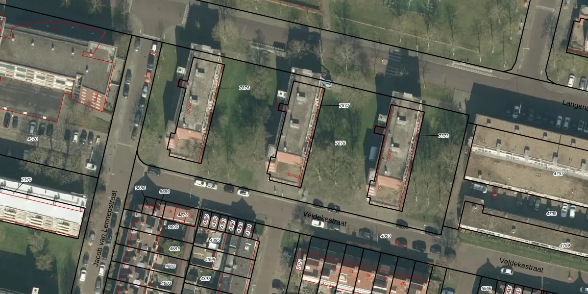 Veldekestraat 56-C is gelegen op kadastraal perceel BDA00E7877. Deze kadastrale aanduiding is uniek en wordt gebruikt door het Kadaster om eigendomsrechten en andere zakelijke rechten vast te leggen. Het perceel maakt onderdeel uit van de kadastrale gemeente Breda.