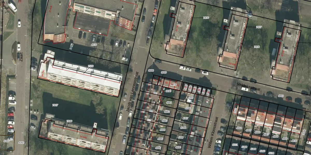 Veldekestraat 59 is gelegen op kadastraal perceel BDA00E8688. Deze kadastrale aanduiding is uniek en wordt gebruikt door het Kadaster om eigendomsrechten en andere zakelijke rechten vast te leggen. Het perceel maakt onderdeel uit van de kadastrale gemeente Breda.