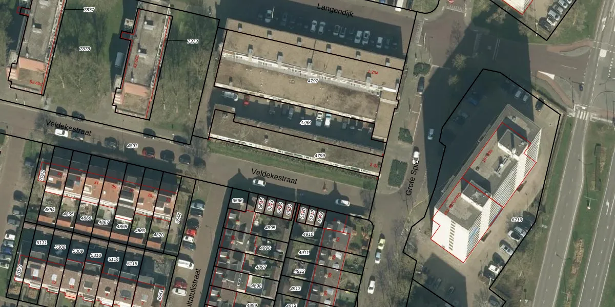 Veldekestraat 6-A is gelegen op kadastraal perceel BDA00E4799. Deze kadastrale aanduiding is uniek en wordt gebruikt door het Kadaster om eigendomsrechten en andere zakelijke rechten vast te leggen. Het perceel maakt onderdeel uit van de kadastrale gemeente Breda.