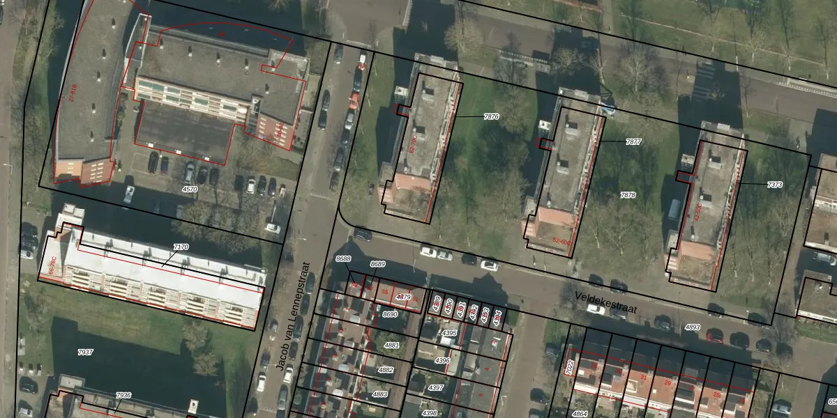 Veldekestraat 62 is gelegen op kadastraal perceel BDA00E7876. Deze kadastrale aanduiding is uniek en wordt gebruikt door het Kadaster om eigendomsrechten en andere zakelijke rechten vast te leggen. Het perceel maakt onderdeel uit van de kadastrale gemeente Breda.