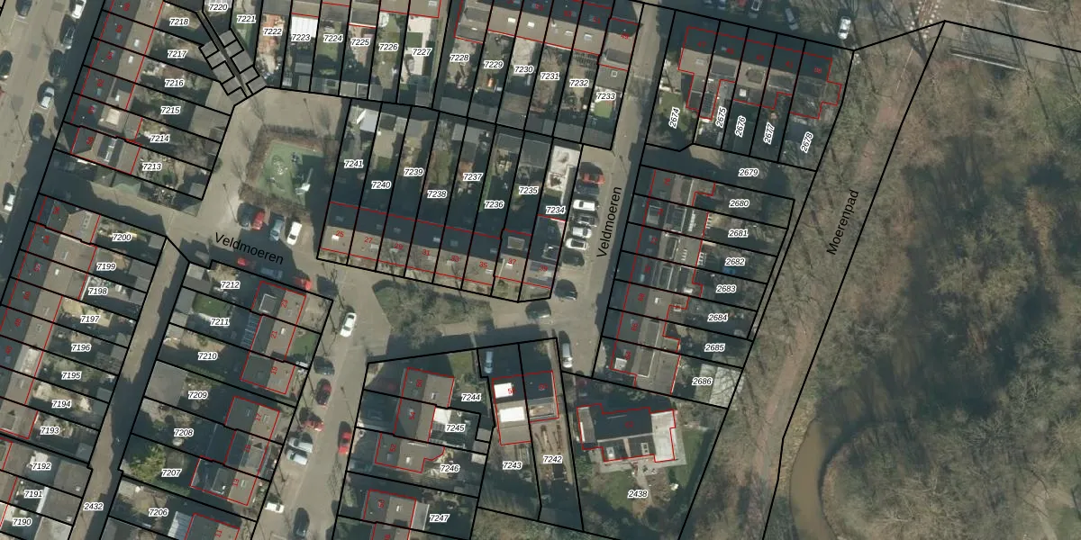 Veldmoeren 39 is gelegen op kadastraal perceel BDA00H7234. Deze kadastrale aanduiding is uniek en wordt gebruikt door het Kadaster om eigendomsrechten en andere zakelijke rechten vast te leggen. Het perceel maakt onderdeel uit van de kadastrale gemeente Breda.