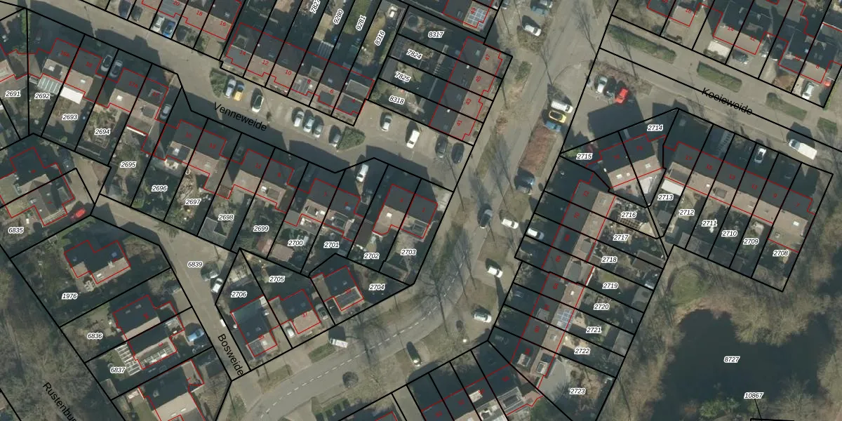 Gebruik de zoekbalk of klik op een perceel voor informatie over de adressen binnen dit perceel.