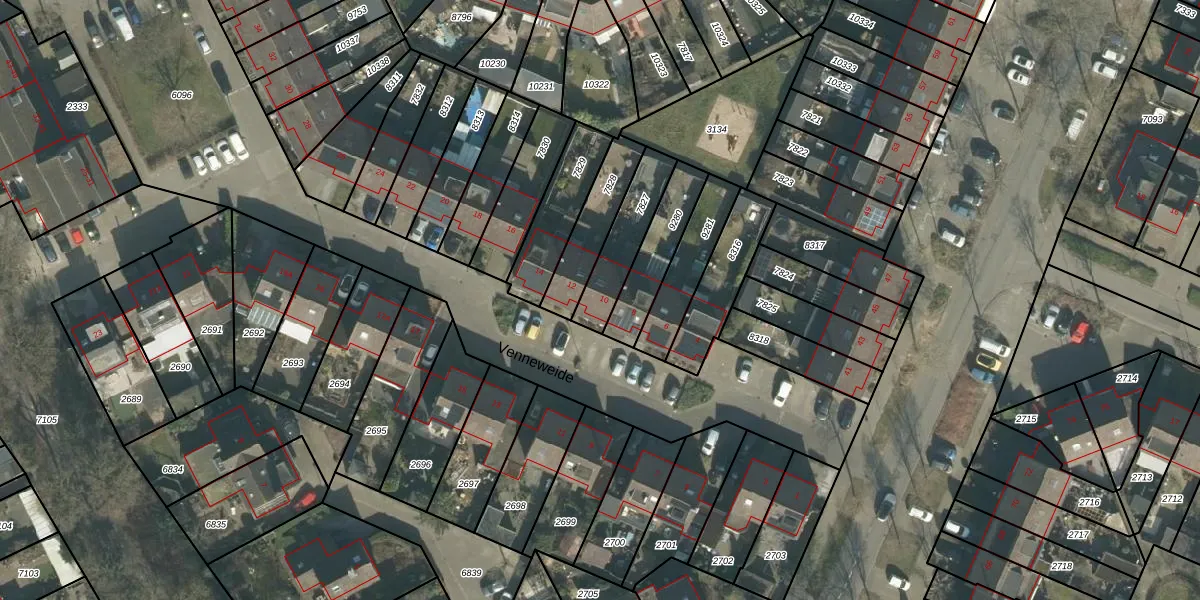 Venneweide 10 is gelegen op kadastraal perceel BDA00H7827. Deze kadastrale aanduiding is uniek en wordt gebruikt door het Kadaster om eigendomsrechten en andere zakelijke rechten vast te leggen. Het perceel maakt onderdeel uit van de kadastrale gemeente Breda.