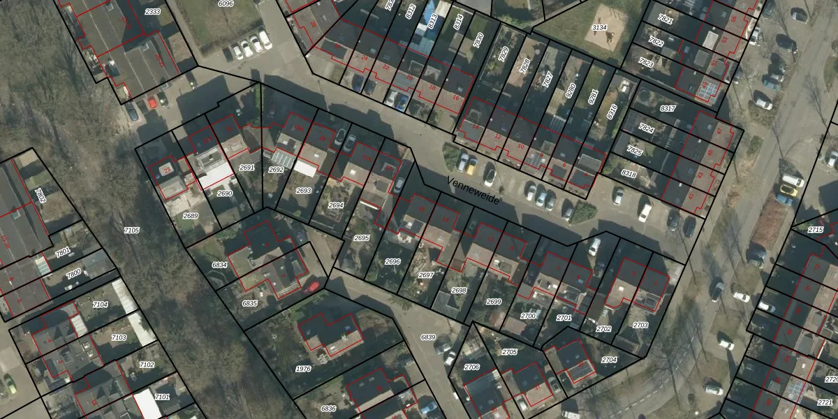 Venneweide 15 is gelegen op kadastraal perceel BDA00H2696. Deze kadastrale aanduiding is uniek en wordt gebruikt door het Kadaster om eigendomsrechten en andere zakelijke rechten vast te leggen. Het perceel maakt onderdeel uit van de kadastrale gemeente Breda.