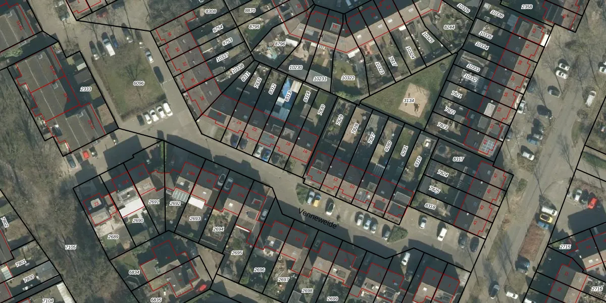 Venneweide 16 is gelegen op kadastraal perceel BDA00H7830. Deze kadastrale aanduiding is uniek en wordt gebruikt door het Kadaster om eigendomsrechten en andere zakelijke rechten vast te leggen. Het perceel maakt onderdeel uit van de kadastrale gemeente Breda.
