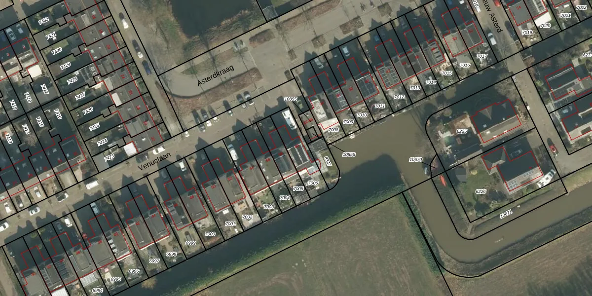 Gebruik de zoekbalk of klik op een perceel voor informatie over de adressen binnen dit perceel.