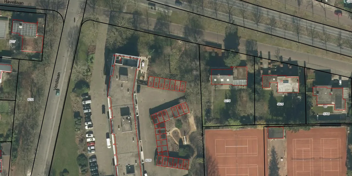 Het perceel waarop Verdilaan 127 staat heeft een oppervlakte van 8970 m². Dit is een zeer groot perceel. De perceeloppervlakte wordt geregistreerd door het Kadaster. Gedetailleerde informatie over de maten van dit perceel kunt u vinden in het rapport Kadastrale kaart met maatvoering van Verdilaan 127.