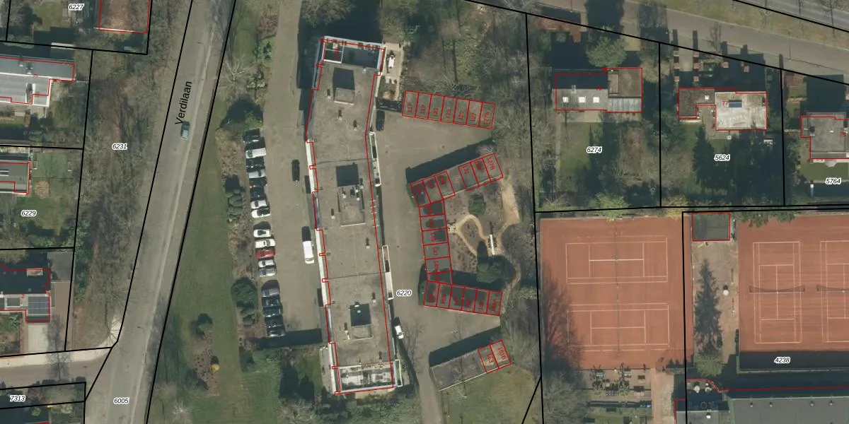 Het perceel waarop Verdilaan 141 staat heeft een oppervlakte van 8970 m². Dit is een zeer groot perceel. De perceeloppervlakte wordt geregistreerd door het Kadaster. Gedetailleerde informatie over de maten van dit perceel kunt u vinden in het rapport Kadastrale kaart met maatvoering van Verdilaan 141.