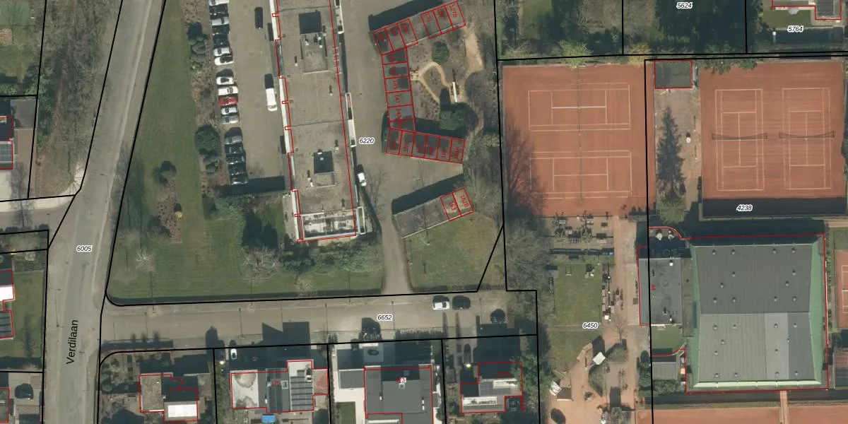 Verdilaan 167 is gelegen op kadastraal perceel BDA00E6220. Deze kadastrale aanduiding is uniek en wordt gebruikt door het Kadaster om eigendomsrechten en andere zakelijke rechten vast te leggen. Het perceel maakt onderdeel uit van de kadastrale gemeente Breda.