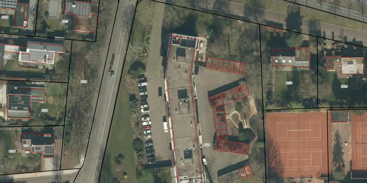 Het perceel waarop Verdilaan 35 staat heeft een oppervlakte van 8970 m². Dit is een zeer groot perceel. De perceeloppervlakte wordt geregistreerd door het Kadaster. Gedetailleerde informatie over de maten van dit perceel kunt u vinden in het rapport Kadastrale kaart met maatvoering van Verdilaan 35.