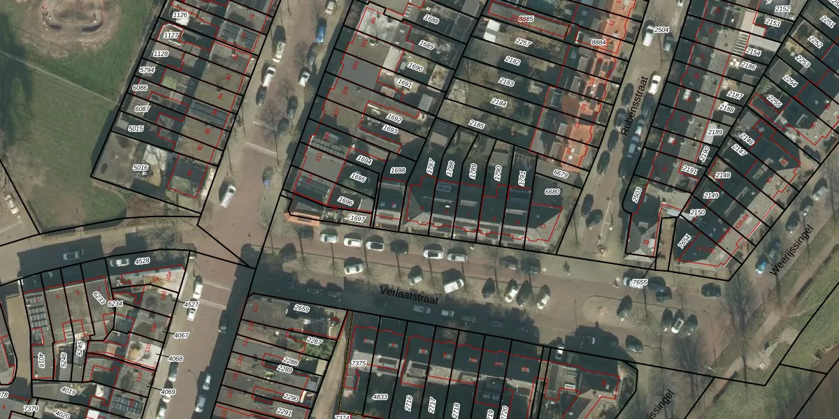 Gebruik de zoekbalk of klik op een perceel voor informatie over de adressen binnen dit perceel.