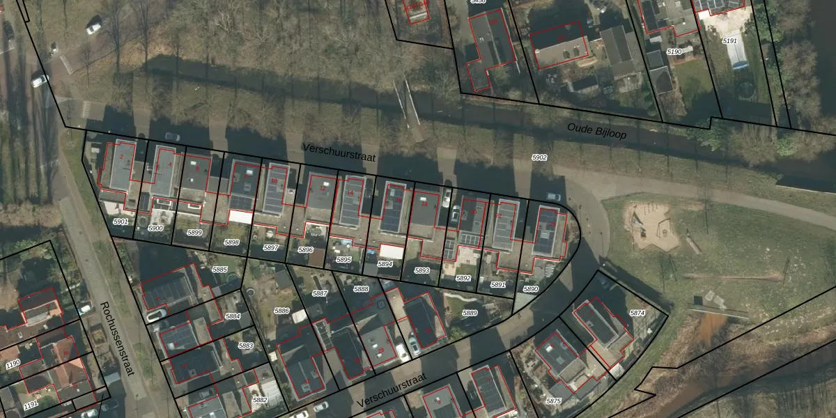 Het perceel waarop Verschuurstraat 18 staat heeft een oppervlakte van 219 m². Dit is een middelgroot perceel. De perceeloppervlakte wordt geregistreerd door het Kadaster. Gedetailleerde informatie over de maten van dit perceel kunt u vinden in het rapport Kadastrale kaart met maatvoering van Verschuurstraat 18.