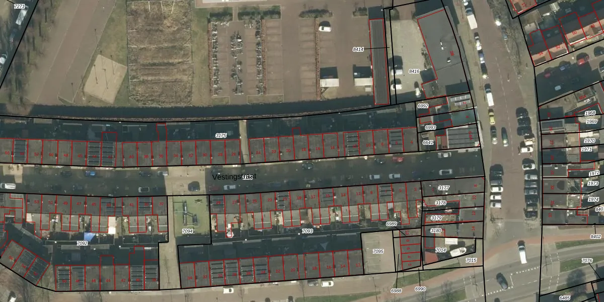 Vestingstraat 18 is gelegen op kadastraal perceel BDA00E3175. Deze kadastrale aanduiding is uniek en wordt gebruikt door het Kadaster om eigendomsrechten en andere zakelijke rechten vast te leggen. Het perceel maakt onderdeel uit van de kadastrale gemeente Breda.