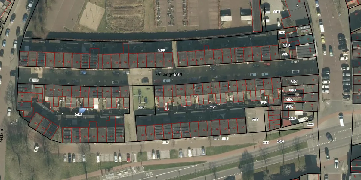 Vestingstraat 25 is gelegen op kadastraal perceel BDA00E7093. Deze kadastrale aanduiding is uniek en wordt gebruikt door het Kadaster om eigendomsrechten en andere zakelijke rechten vast te leggen. Het perceel maakt onderdeel uit van de kadastrale gemeente Breda.