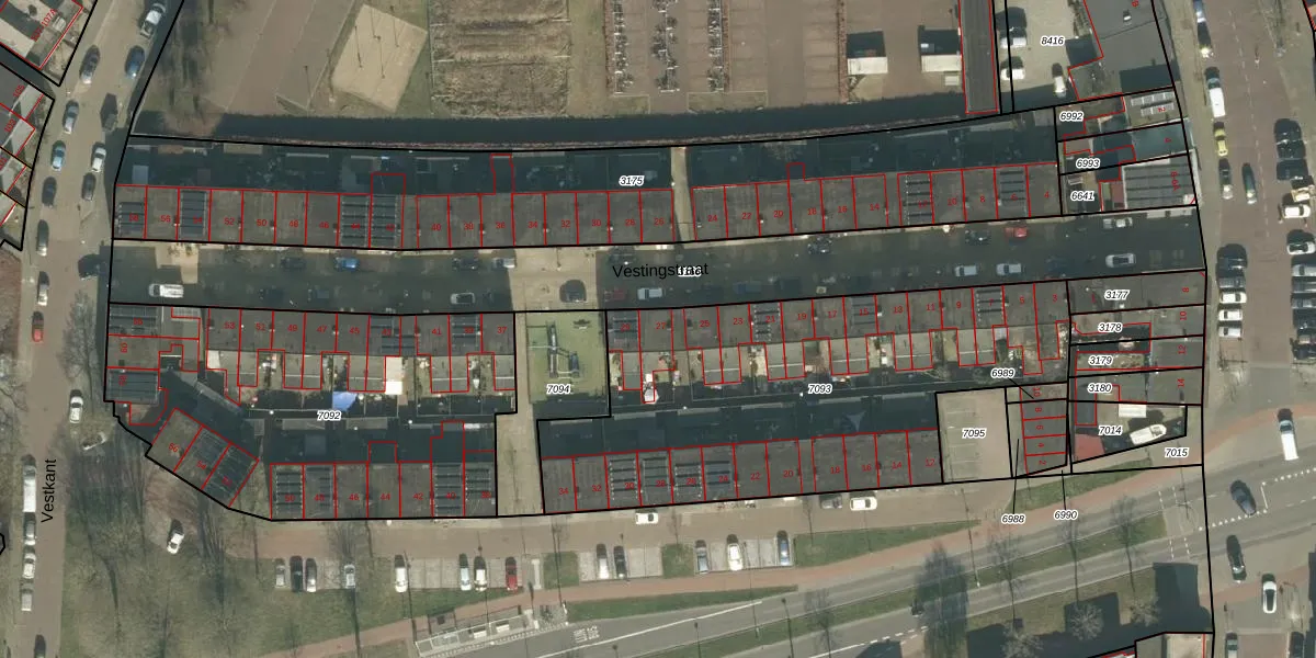 Het perceel waarop Vestingstraat 27 staat heeft een oppervlakte van 1935 m². Dit is een zeer groot perceel. De perceeloppervlakte wordt geregistreerd door het Kadaster. Gedetailleerde informatie over de maten van dit perceel kunt u vinden in het rapport Kadastrale kaart met maatvoering van Vestingstraat 27.
