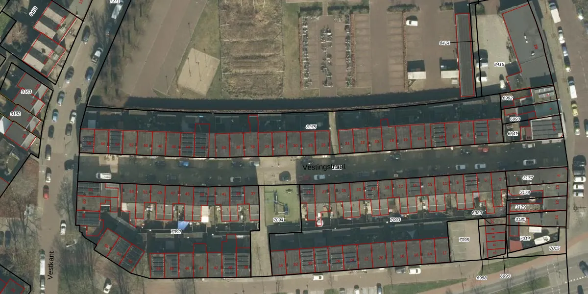 Vestingstraat 30 is gelegen op kadastraal perceel BDA00E3175. Deze kadastrale aanduiding is uniek en wordt gebruikt door het Kadaster om eigendomsrechten en andere zakelijke rechten vast te leggen. Het perceel maakt onderdeel uit van de kadastrale gemeente Breda.