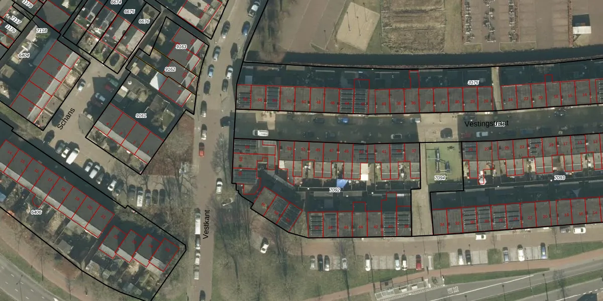 Het perceel waarop Vestingstraat 51 staat heeft een oppervlakte van 1765 m². Dit is een zeer groot perceel. De perceeloppervlakte wordt geregistreerd door het Kadaster. Gedetailleerde informatie over de maten van dit perceel kunt u vinden in het rapport Kadastrale kaart met maatvoering van Vestingstraat 51.