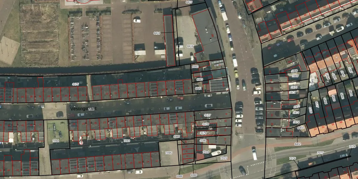 Vestingstraat 6 is gelegen op kadastraal perceel BDA00E3175. Deze kadastrale aanduiding is uniek en wordt gebruikt door het Kadaster om eigendomsrechten en andere zakelijke rechten vast te leggen. Het perceel maakt onderdeel uit van de kadastrale gemeente Breda.