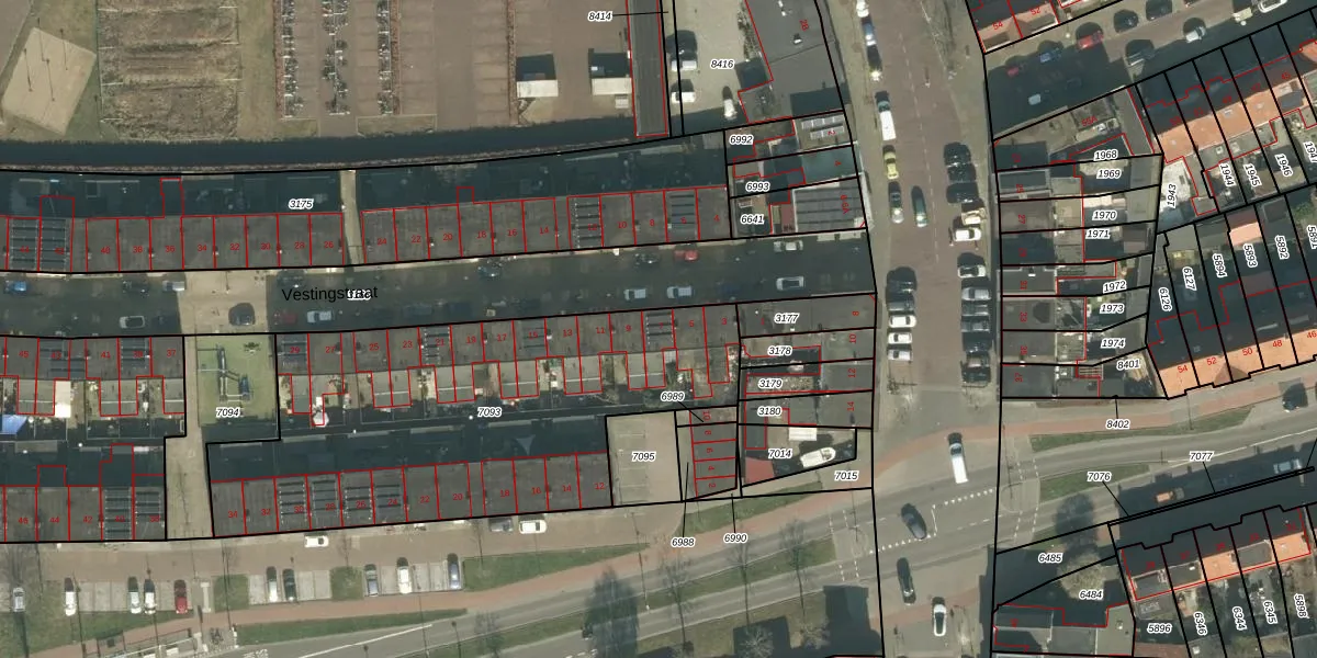 Het perceel waarop Vestingstraat 7 staat heeft een oppervlakte van 1935 m². Dit is een zeer groot perceel. De perceeloppervlakte wordt geregistreerd door het Kadaster. Gedetailleerde informatie over de maten van dit perceel kunt u vinden in het rapport Kadastrale kaart met maatvoering van Vestingstraat 7.