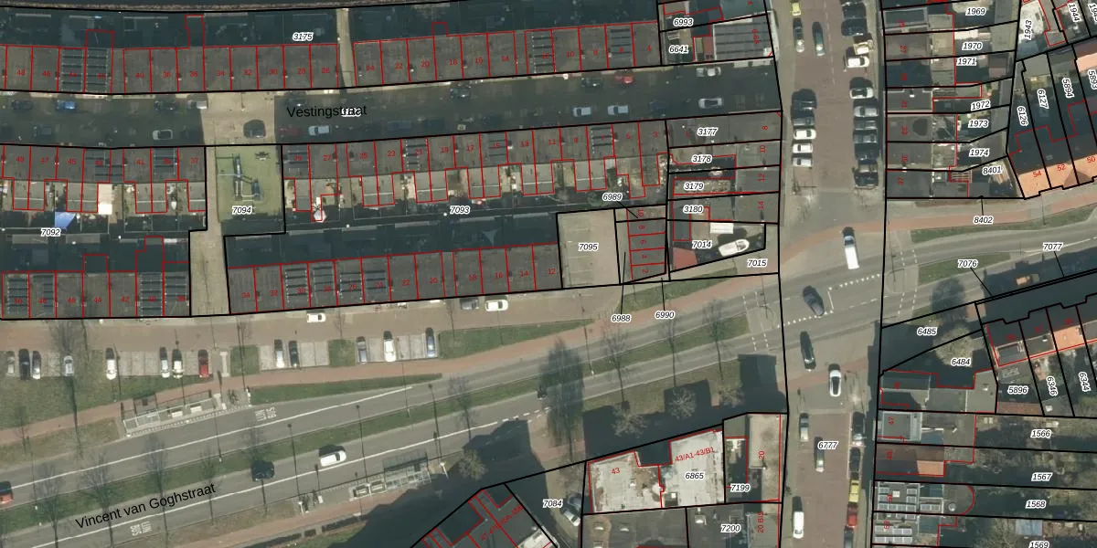 Het perceel waarop het adres ligt is BDA00-E-7093. De afkorting 'BDA00' staat voor kadastrale gemeente Breda. De gemiddelde perceeloppervlakte in de kadastrale gemeente Breda is 1060,03 m². Dit perceel is met zijn 1935 m² dus groter dan gemiddeld. Het grootste perceel in de kadastrale gemeente is 44,1 ha. Het kleinste perceel heeft een oppervlakte van 0 m². Op het perceel liggen in totaal 26 adressen. De huidige grenzen van het perceel zijn digitaal in de Basisregistratie Kadaster (BRK) geregistreerd op 31-10-2006.