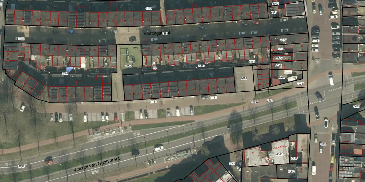 Vestkant 22 is gelegen op kadastraal perceel BDA00E7093. Deze kadastrale aanduiding is uniek en wordt gebruikt door het Kadaster om eigendomsrechten en andere zakelijke rechten vast te leggen. Het perceel maakt onderdeel uit van de kadastrale gemeente Breda.