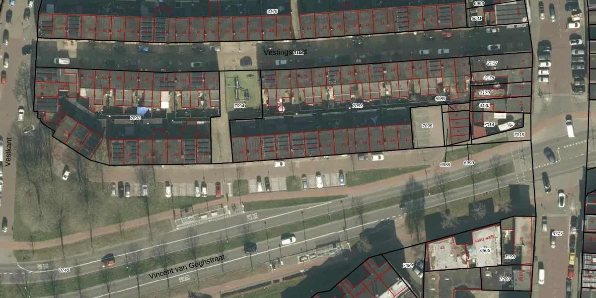 Vestkant 26 is gelegen op kadastraal perceel BDA00E7093. Deze kadastrale aanduiding is uniek en wordt gebruikt door het Kadaster om eigendomsrechten en andere zakelijke rechten vast te leggen. Het perceel maakt onderdeel uit van de kadastrale gemeente Breda.