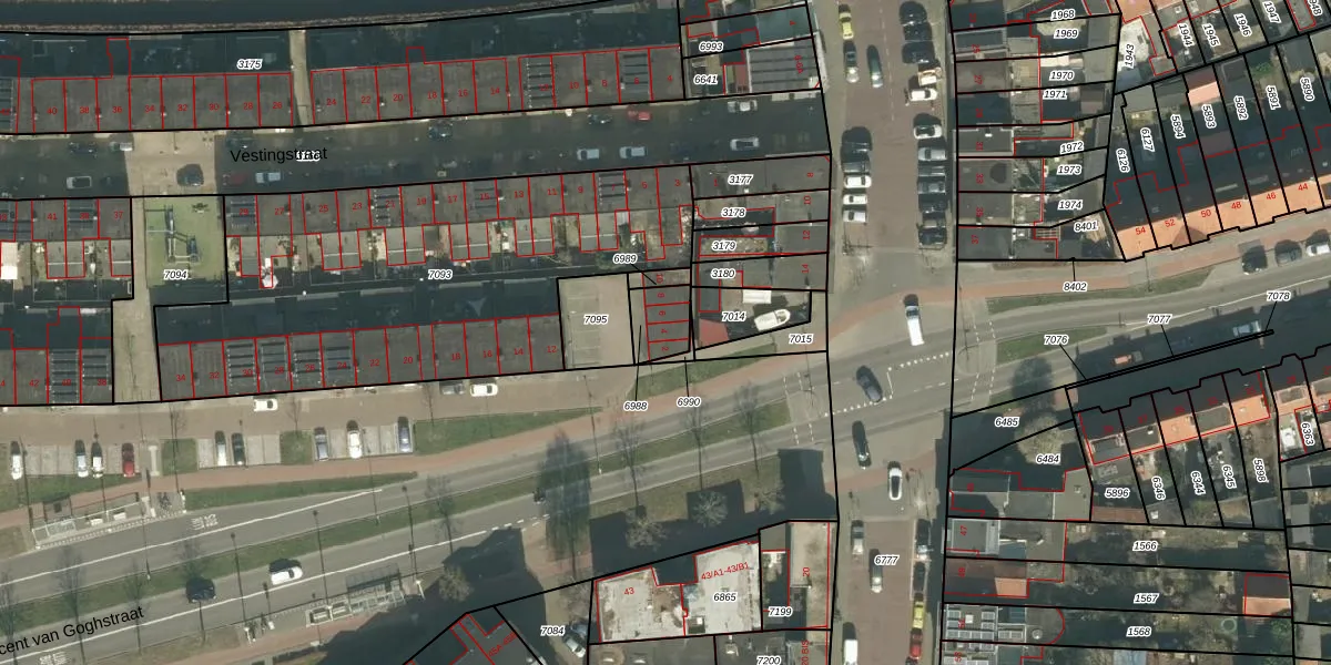Het perceel waarop Vestkant 4 staat heeft een oppervlakte van 92 m². Dit is een klein perceel. De perceeloppervlakte wordt geregistreerd door het Kadaster. Gedetailleerde informatie over de maten van dit perceel kunt u vinden in het rapport Kadastrale kaart met maatvoering van Vestkant 4.