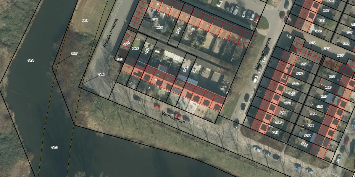 Het perceel waarop Veurnestraat 48 staat heeft een oppervlakte van 187 m². Dit is een middelgroot perceel. De perceeloppervlakte wordt geregistreerd door het Kadaster. Gedetailleerde informatie over de maten van dit perceel kunt u vinden in het rapport Kadastrale kaart met maatvoering van Veurnestraat 48.