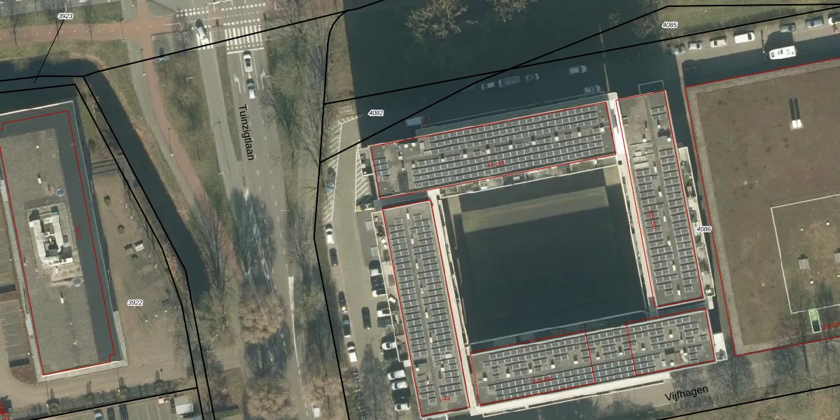 Het perceel waarop Vijfhagen 28 staat heeft een oppervlakte van 1,6 ha. Dit is een zeer groot perceel. De perceeloppervlakte wordt geregistreerd door het Kadaster. Gedetailleerde informatie over de maten van dit perceel kunt u vinden in het rapport Kadastrale kaart met maatvoering van Vijfhagen 28.