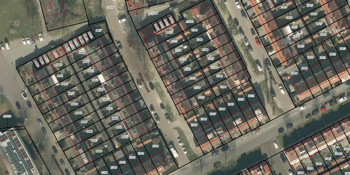 Gebruik de zoekbalk of klik op een perceel voor informatie over de adressen binnen dit perceel.