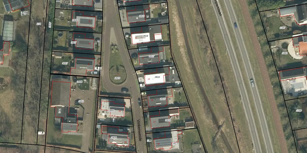 Vinkenweide 13 is gelegen op kadastraal perceel PCH00P2816. Deze kadastrale aanduiding is uniek en wordt gebruikt door het Kadaster om eigendomsrechten en andere zakelijke rechten vast te leggen. Het perceel maakt onderdeel uit van de kadastrale gemeente Princenhage.