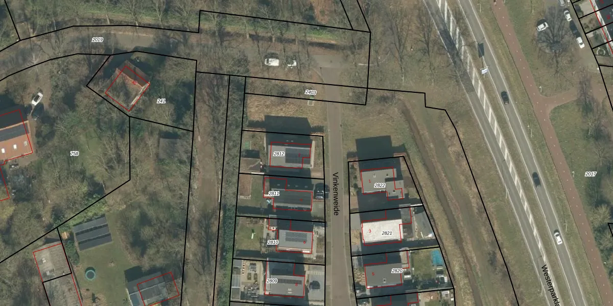 Vinkenweide 2 is gelegen op kadastraal perceel PCH00P2812. Deze kadastrale aanduiding is uniek en wordt gebruikt door het Kadaster om eigendomsrechten en andere zakelijke rechten vast te leggen. Het perceel maakt onderdeel uit van de kadastrale gemeente Princenhage.