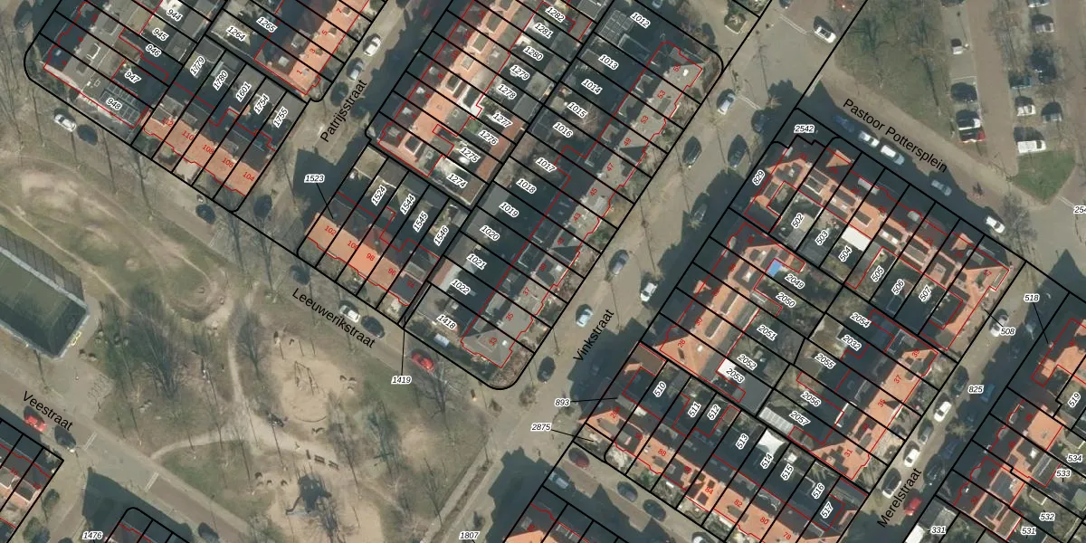 Het perceel waarop Vinkstraat 39 staat heeft een oppervlakte van 134 m². Dit is een middelgroot perceel. De perceeloppervlakte wordt geregistreerd door het Kadaster. Gedetailleerde informatie over de maten van dit perceel kunt u vinden in het rapport Kadastrale kaart met maatvoering van Vinkstraat 39.