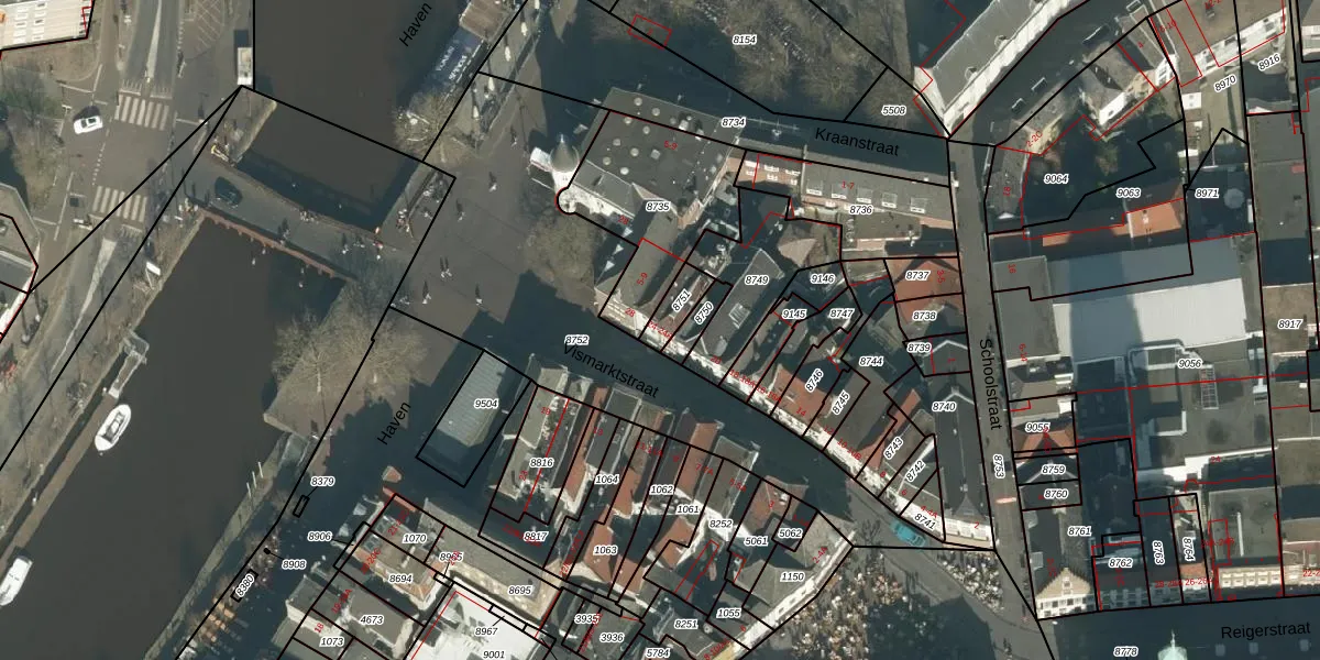 Het perceel waarop Vismarktstraat 24 staat heeft een oppervlakte van 64 m². Dit is een klein perceel. De perceeloppervlakte wordt geregistreerd door het Kadaster. Gedetailleerde informatie over de maten van dit perceel kunt u vinden in het rapport Kadastrale kaart met maatvoering van Vismarktstraat 24.