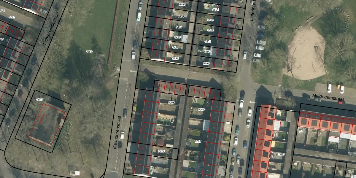 Het perceel waarop Vlaanderenstraat 102 staat heeft een oppervlakte van 116 m². Dit is een middelgroot perceel. De perceeloppervlakte wordt geregistreerd door het Kadaster. Gedetailleerde informatie over de maten van dit perceel kunt u vinden in het rapport Kadastrale kaart met maatvoering van Vlaanderenstraat 102.