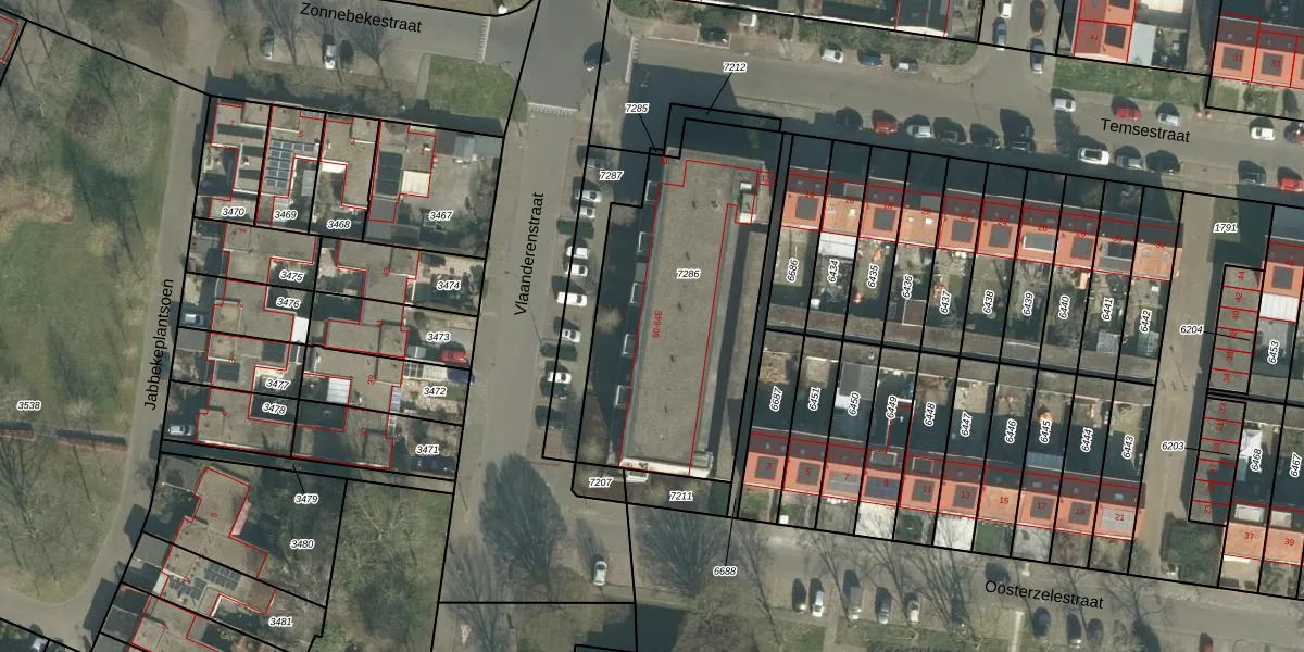 Het perceel waarop Vlaanderenstraat 60-B staat heeft een oppervlakte van 1228 m². Dit is een zeer groot perceel. De perceeloppervlakte wordt geregistreerd door het Kadaster. Gedetailleerde informatie over de maten van dit perceel kunt u vinden in het rapport Kadastrale kaart met maatvoering van Vlaanderenstraat 60-B.