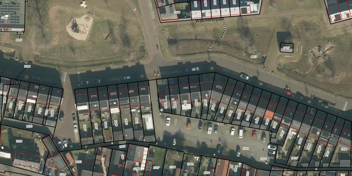 Vlielandstraat 32 is gelegen op kadastraal perceel BDA00G7654. Deze kadastrale aanduiding is uniek en wordt gebruikt door het Kadaster om eigendomsrechten en andere zakelijke rechten vast te leggen. Het perceel maakt onderdeel uit van de kadastrale gemeente Breda.