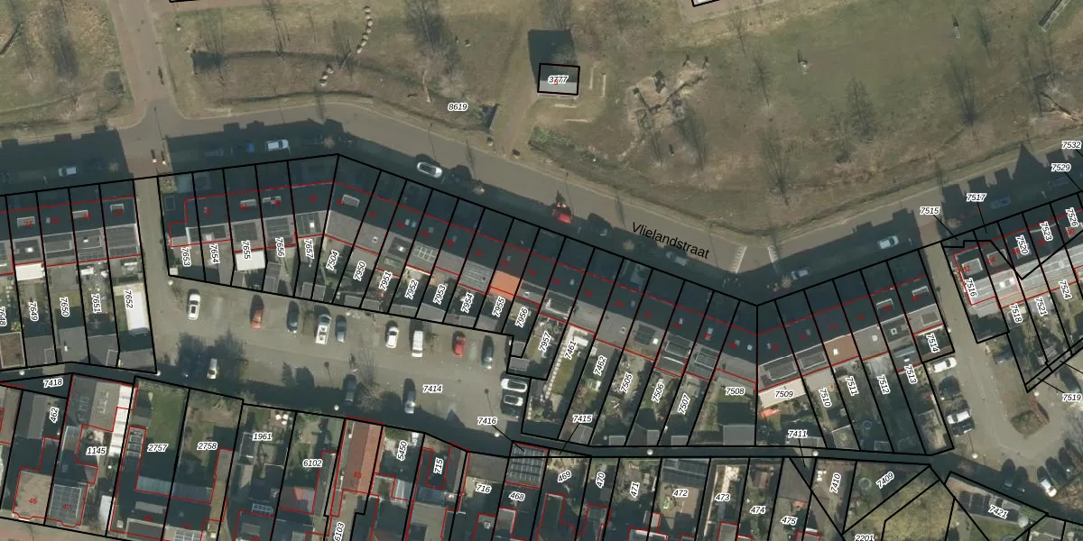 Vlielandstraat 54 is gelegen op kadastraal perceel BDA00G7956. Deze kadastrale aanduiding is uniek en wordt gebruikt door het Kadaster om eigendomsrechten en andere zakelijke rechten vast te leggen. Het perceel maakt onderdeel uit van de kadastrale gemeente Breda.