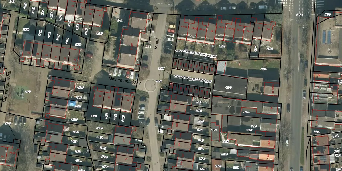Gebruik de zoekbalk of klik op een perceel voor informatie over de adressen binnen dit perceel.