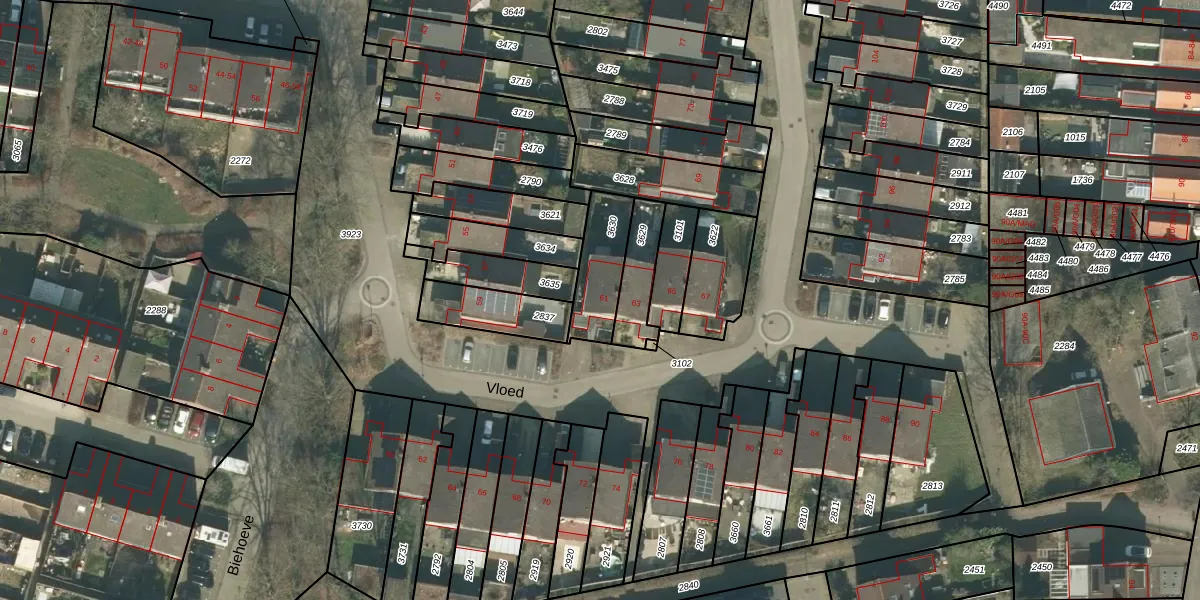 Het perceel waarop Vloed 61 staat heeft een oppervlakte van 182 m². Dit is een middelgroot perceel. De perceeloppervlakte wordt geregistreerd door het Kadaster. Gedetailleerde informatie over de maten van dit perceel kunt u vinden in het rapport Kadastrale kaart met maatvoering van Vloed 61.