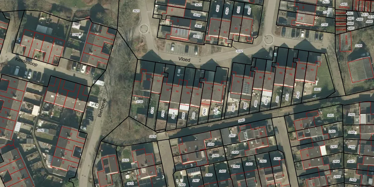 Vloed 68 is gelegen op kadastraal perceel PCH00N2805. Deze kadastrale aanduiding is uniek en wordt gebruikt door het Kadaster om eigendomsrechten en andere zakelijke rechten vast te leggen. Het perceel maakt onderdeel uit van de kadastrale gemeente Princenhage.