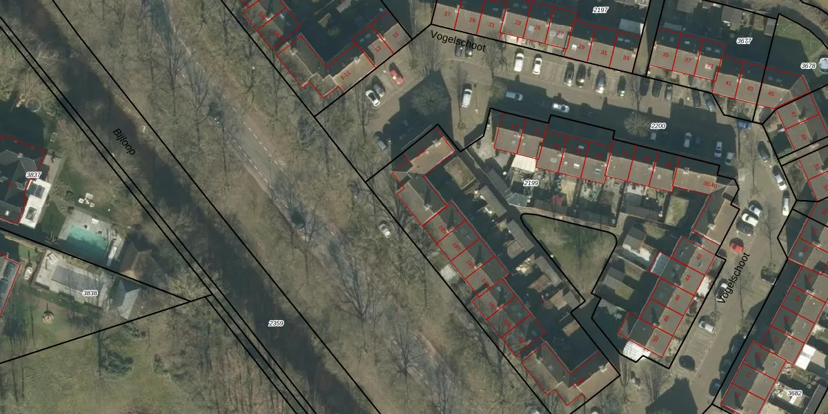Vogelschoot 2 is gelegen op kadastraal perceel PCH00N2199. Deze kadastrale aanduiding is uniek en wordt gebruikt door het Kadaster om eigendomsrechten en andere zakelijke rechten vast te leggen. Het perceel maakt onderdeel uit van de kadastrale gemeente Princenhage.